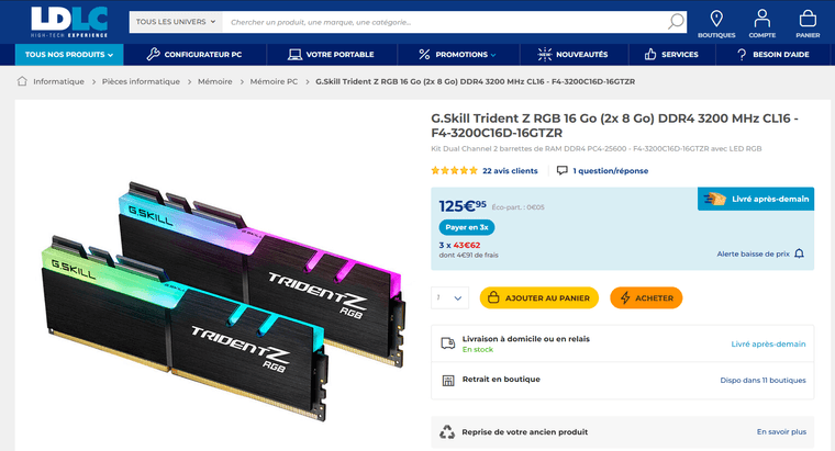 Exemple chez un marchand français bien connu pour 16 GO (2x8)