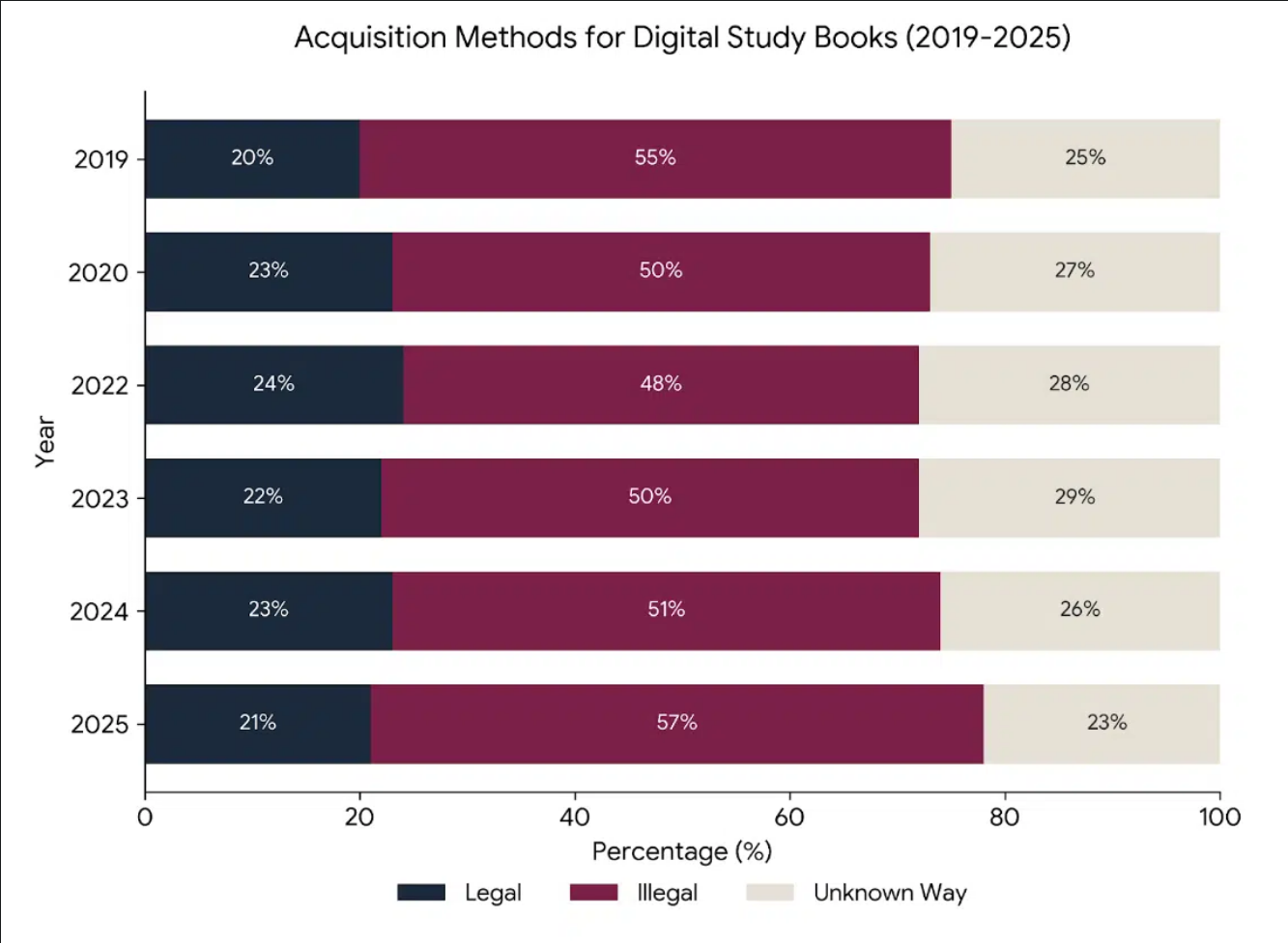 Malgré ces condamnations retentissantes, les habitudes de partage de manuels scolaires entre étudiants sont restées étonnamment stables. Selon la dernière enquête d’ Epinion (2025 ), le partage de manuels est une pratique courante. Parmi les étudiants utilisant des manuels numériques, plus de la moitié (57 %) ont acquis au moins un manuel illégalement.