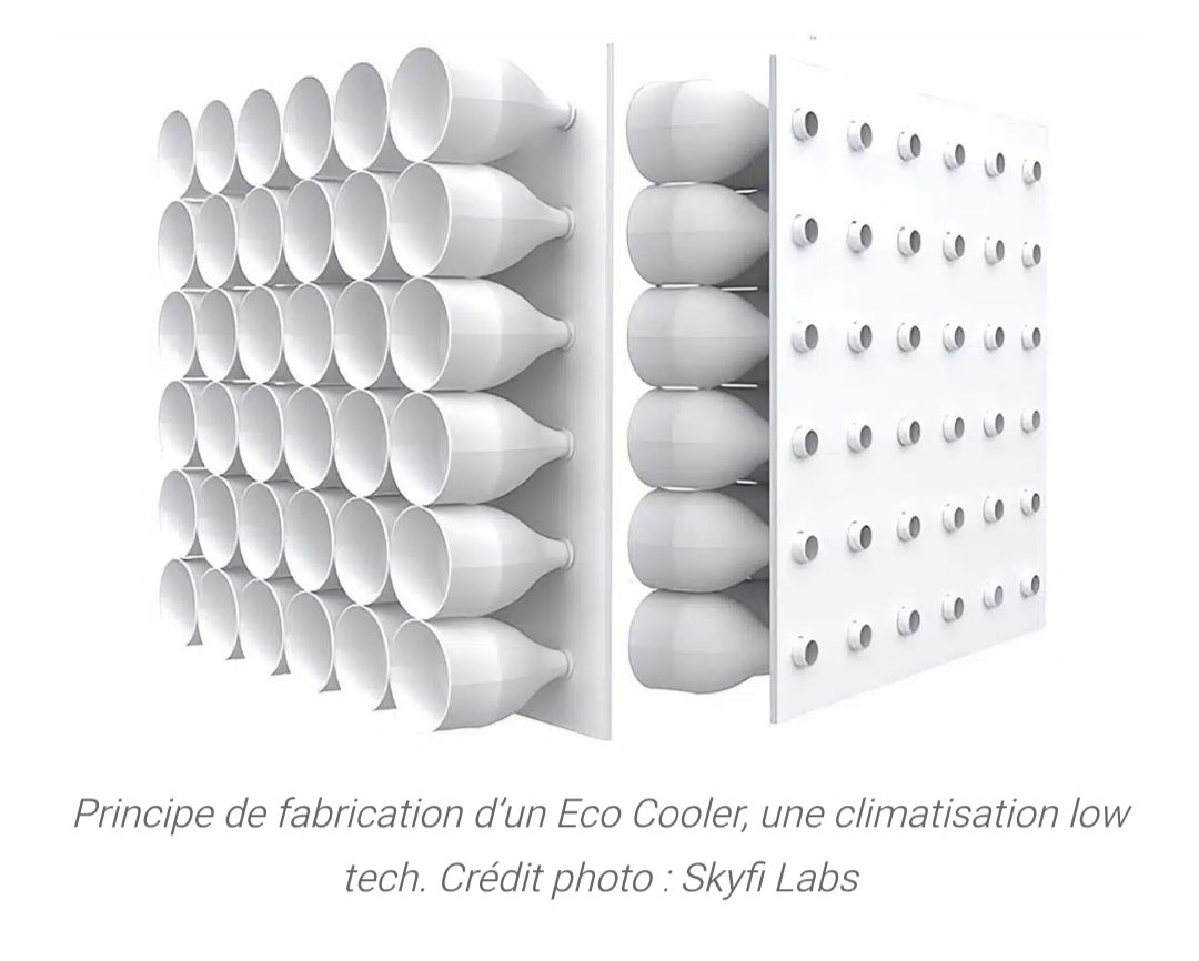 L’Eco-Cooler serait le premier climatiseur low-tech à fonctionner sans électricité et le moins cher au monde. En 2016, un Bangladais nommé Ashis Paul a eu l’idée de fabriquer un système de climatisation passif en utilisant des bouteilles en plastique vides. Pour la petite histoire, il a pris cette initiative après avoir entendu le professeur particulier de sa fille lui expliquer l’effet Joule-Thomson, décrivant la baisse de température d’un gaz lorsqu’il subit une détente adiabatique. Il s’est alors dit qu’il est tout à fait possible de fabriquer un climatiseur basé sur ce phénomène thermodynamique et qui ne nécessite pas d’électricité. C’est là qu’est né l’Eco-Cooler. Ashis Paul l’avait surtout conçu pour offrir aux Bangladais la possibilité de réduire de quelques degrés la température intérieure de leur maison, pendant les périodes de forte chaleur. Notons que dans le pays, comme en France, les vagues de chaleur sont de plus en plus fréquentes.