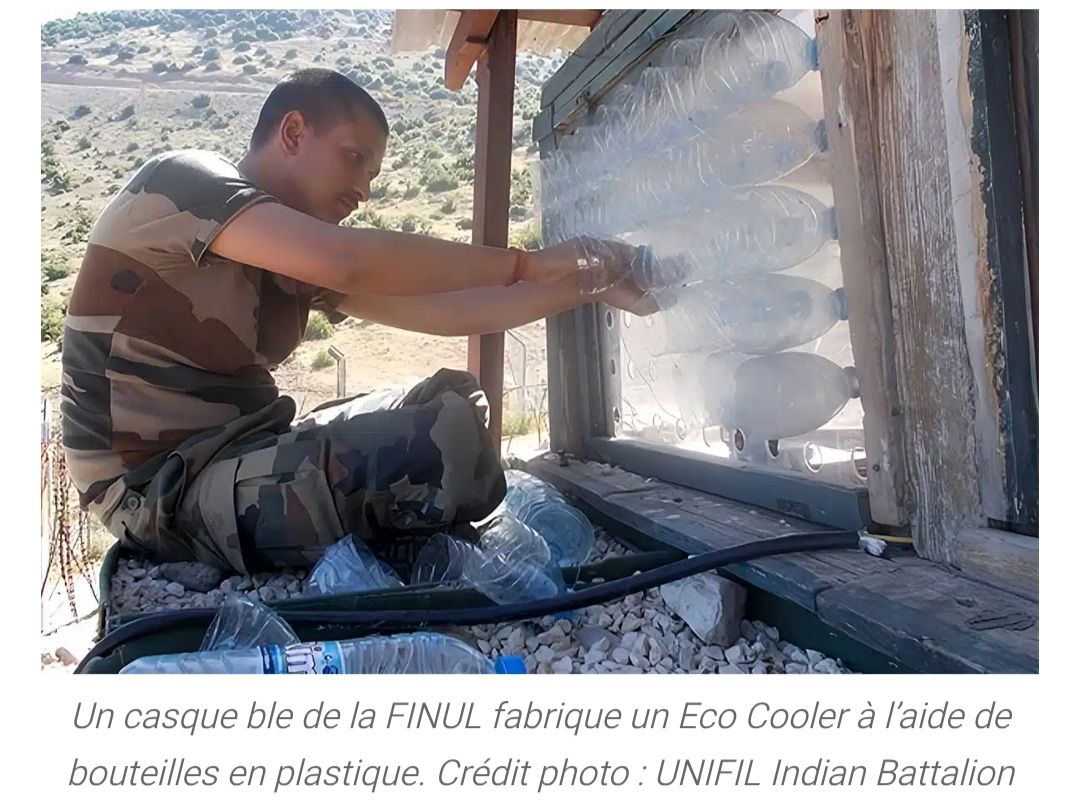 Comme susmentionné, ce climatiseur low-tech est fabriqué avec des bouteilles en plastique recyclées. Celles-ci sont coupées en deux et fixées sur une planche de la taille d’une fenêtre. Leurs goulots sont conservés et dirigés vers l’intérieur de la pièce à refroidir. L’objectif est de compresser, au niveau du goulot, l’air chaud qui entre dans chaque bouteille, afin de le refroidir. En effet, c’est cette compression qui entraîne la détente rapide de l’air et la baisse de sa température, comme nous l’avons expliqué dans cet article. Ce qui permet de réduire la température ambiante d’environ 5 °C. L’Eco-Cooler est facile à fabriquer et d’ailleurs, ses plans ont été mis en accès libre sur Internet. Bon nombre de foyers ont en fabriqué au Bangladesh et pas seulement. Les Casques bleus de la FINUL indiquent également avoir utilisé le même système pendant leur mission au Liban. Selon eux, « l’atout majeur de cette invention est qu’elle valorise un déchet courant, réduisant ainsi les déchets plastiques et les températures insupportables d’un seul coup ».