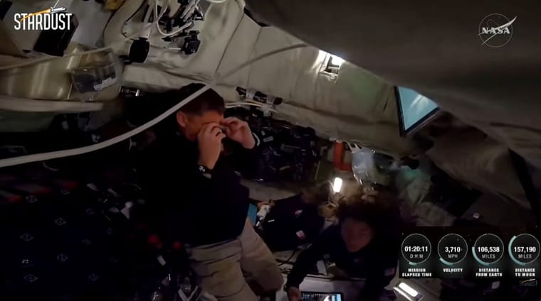 Orion en direct qui file vers la Lune