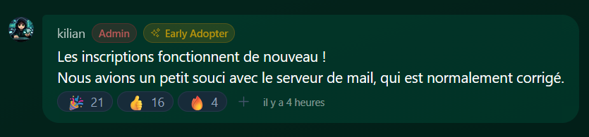 Il y avait bien un problème d’envoi de mails qui a été corrigé.