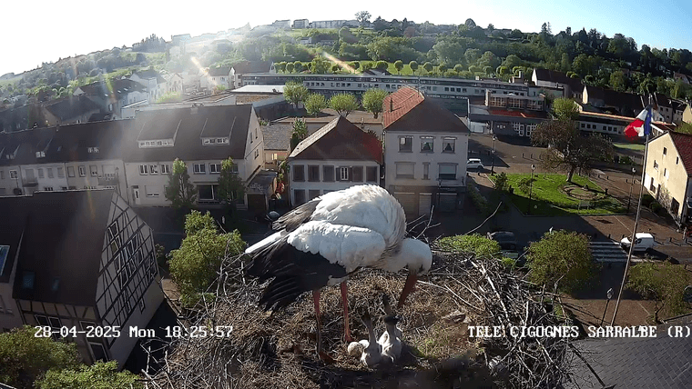 Z’ont foutu le drapeau en berne. Les cigognes sont en deuil à Sarralbe…Je ne les savais pas cathos.