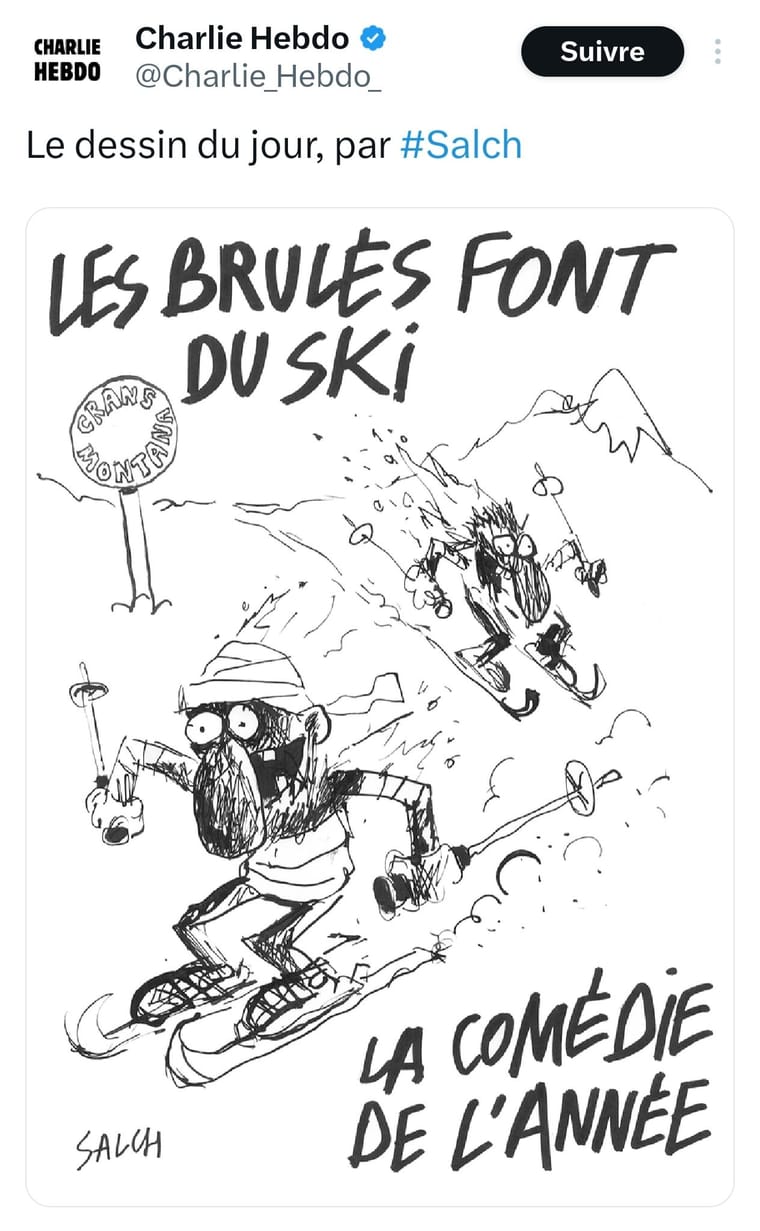 Charlie Hebdo en a fait une couverture : Les brûlés font du ski