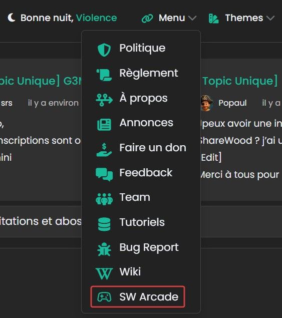 Ou alors par le biais du Menu/SW Arcade :