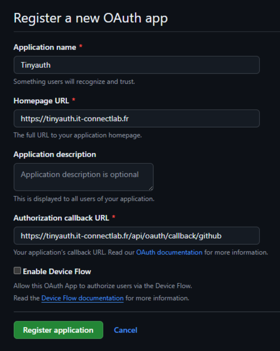 Donnez un nom à l’application et précisez une description. Par exemple :